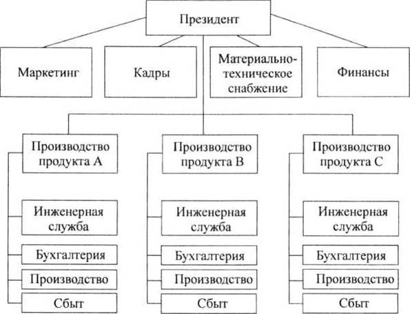 Отход от использования строго функциональных схем управления корпорациями в пользу дивизиональной, организованной по отделениям структуры достаточно отчетливо прослеживается по мере увеличения степени диверсификации производства.