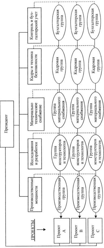 В этих структурах по вертикали показано управление структурными подразделениями организации, по горизонтали — отдельными программами и проектами (например, при организации исследований и разработок), для выполнения которых на время привлекаются специалисты и ресурсы из различных подразделений организации.