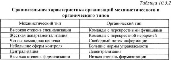 Таблица 10.5.2. Сравнительная характеристика организаций механистического и органического типов