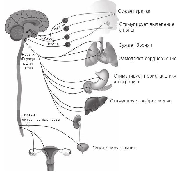 Данные из автономной нервной системы фиксируются при помощи систем отслеживания движений глаз и инструментов измерения электропроводимости кожи, а также рядом инструментов, контролирующих дыхание и частоту сердечных сокращений. Вместе эти показатели формируют то, что обычно называют биометрическими данными. Несмотря на то что мы умеем сознательно замечать влияние некоторых изменений в нашей симпатической (рис. 2.2) или парасимпатической нервной системе (рис. 2.3), особенно в ситуациях, когда решаем, драться или убегать, появление миллионов других биологических реакций, влияющих на наш кровоток, пищеварение, дыхание и потоотделение, в значительной степени подсознательно. Именно здесь нейромаркетинговые исследования (значительно) превосходят традиционные методы сбора данных на основе самоотчетов. Как нейромаркетологи, мы не оцениваем эмоции, мы их измеряем. Мы не ускоряем процесс возникновения реакции, а синхронизируем десятки нейрофизиологических переменных, чтобы выстроить полный временной ряд как из первичной (самой старой, подкорковой), так и из рациональной (новейшей, кортикальной) области мозга.
