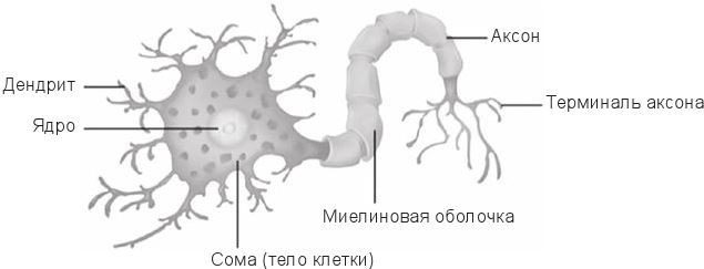 Как измерить внимание в мозге? Это делается с помощью записи нейрофизиологических реакций в тот момент, когда люди подвергаются воздействию сообщения. Процесс может длиться миллисекунды, секунды или минуты. Подобные реакции вызывают электрохимические сигналы, которые распространяются на тысячи нейронов. Нейроны – это клетки мозга, которые инициируют и контролируют все формы активности в мозге. У нас есть 86 миллиардов нейронов и более 100 триллионов связей (называемых синапсами) между этими нейронами. Нейроны соединяются в аксоны и дендриты (рис. 2.4). Нейроны представляют только 20 % клеток мозга. Вспомогательные клетки нервной ткани называются глиальными клетками, они поддерживают нейроны, а также играют решающую роль в ускорении передачи информации.
