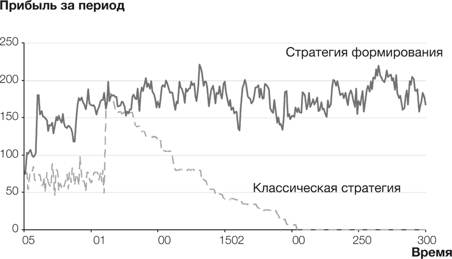 Рисунок 5–4. В непредсказуемой и пластичной среде эффективны стратегии формирования (моделирование)
