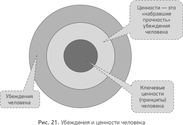 Чтобы продолжить наши рассуждения, необходимо определиться с тем, что есть ценности человека и чем они отличаются от других его убеждений (рис. 21).