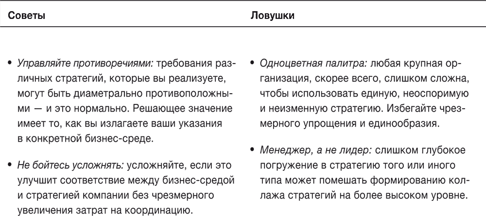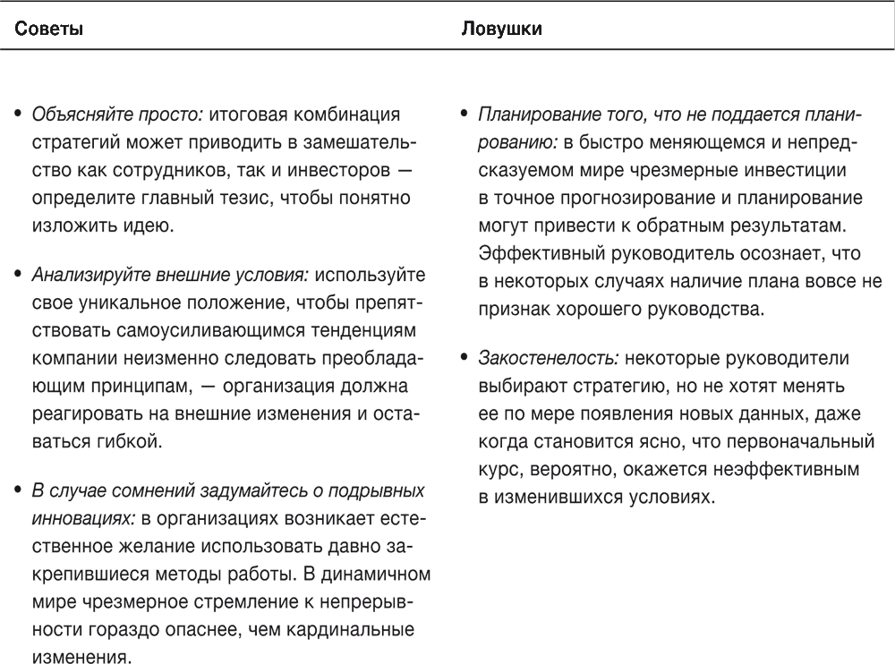 Таблица 8–1. Советы и ловушки: ключевые факторы успеха руководителей в ходе реализации стратегии в неоднородной и меняющейся бизнес-среде