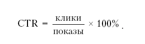 CTR – отношение количества кликов к количеству показов, выраженное в процентах: