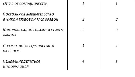 В таблице 2 указаны номера мест, которые те или иные проявления микроменеджмента заняли по числу положительных ответов, данных менеджерами и рядовыми сотрудниками.