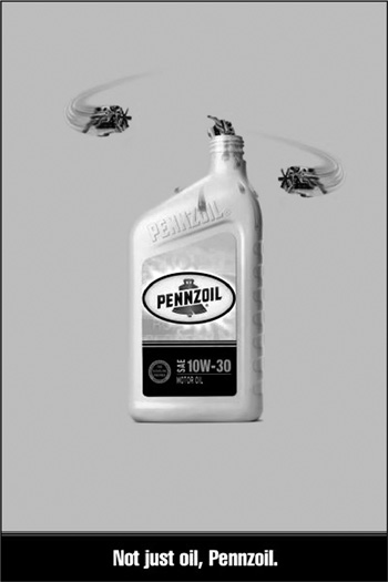 Даже флирт и ухаживание нашли отражение в ужасно сентиментальной, человечной рекламе моторного масла (рис. 96). Парочка двигателей, как майские шмели, летают вокруг открытой канистры, а их третий собрат уже наполовину залез внутрь, чтобы вдоволь напиться «маслянистого хмеля».