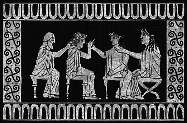 Воспитание детей. Воспитанием в Спарте пронизано все. Мы не пеленаем наших детей, чтобы у них не было застоя крови и они с детства не утратили чувства свободы. Мы купаем их в крепком вине, чтобы тела их стали крепкими. Наши няньки славятся по всей Греции, они не потворствуют капризам и нытью, а растят детей бодрыми и здоровыми[7]. После 7 лет все спартанские мальчики вступают в школу общественного спартанского воспитания агоге. Понятно, что для граждан Спарты это обучение совершенно бесплатно, а вот если иностранцы захотят отдать своих детей в агоге (кстати, таких немало), им это обойдется недешево. У каждого молодого спартанца есть свой наставник. Злые языки поговаривают, что у наставника с подопечным противоестественные отношения. В Спарте это не приветствуется, как, например, в Коринфе, Фивах и тех же Афинах.