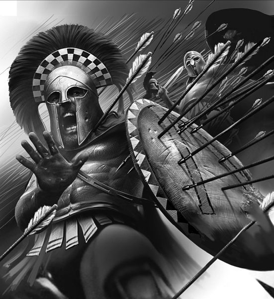 Спартанец в бою. Рисунок И. Варавина