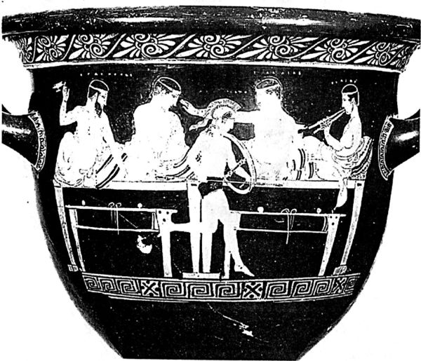 Общие обеды сисситии. Близкие обычаи общих обедов я нашел на Крите. Там они назывались андриями. Мы все, спартанцы, едим за одним обеденным столом. Нет, конечно же, не за одним длинным столом — такого стола, чтобы вокруг него разместились все спартанцы, не существует. Мы собираемся по 20–30 человек, вместе вкушаем пищу и вместе бьемся в одном строю. Это дружеский стол. За ним не бывает людей, которым мы не доверяем. Когда к столу присоединяется молодой воин, только общее согласие всех, определяемое тайным голосованием, решает, присоединится он к нашему столу или нет. Но наши столы — не закрытое тайное общество. Часто мы берем с собой своих детей, чтобы они впитывали нашу культуру. Присутствие детей заставляет взрослых следить за своим поведением и языком, а дети в свою очередь учатся нашей знаменитой лаконской речи.