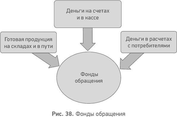 Фонды обращения – это ресурсы организации, участвующие в процессе продажи продукта (рис. 38), а именно: