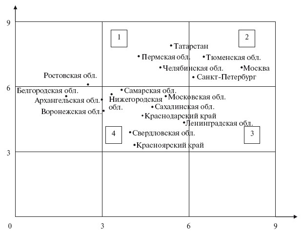 Рис. 4.17. Итоговая матрица распределения регионов по привлекательности