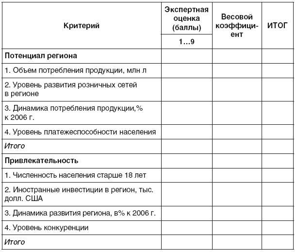 Приведем алгоритм оценки перспективности регионов на примере рынка элитного алкоголя (рис. 4.17, табл. 4.1).