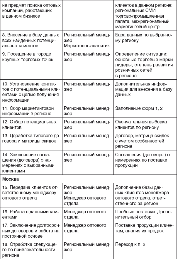 На основании представленного алгоритма разработана технология работы регионального менеджера по поиску клиентов в регионе (табл. 4.2).