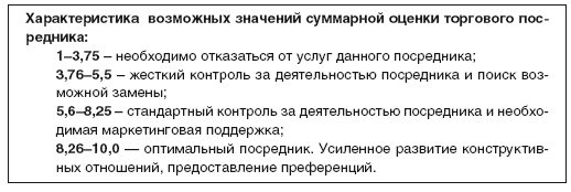 4. Характеристика возможных значений суммарной оценки торгового посредника (табл. 4.3).