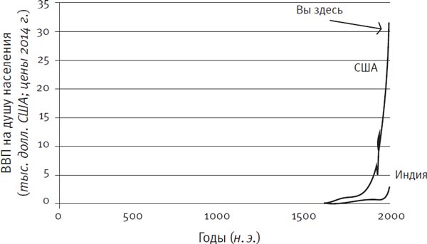 Если вы читаете эту книгу, то, вероятно, вам (как и мне) повезло, и вы ежегодно зарабатываете не менее 16 тыс. долларов и, таким образом, принадлежите к 10 % богатейшего населения планеты. А наше время наследует периоду экономического расцвета, благодаря которому некоторые страны приобрели сказочное, с исторической точки зрения, богатство. В 1800 году ежегодный ВВП на душу населения в США составлял всего 1,4 тыс. долларов (в нынешних ценах), а сейчас он превышает 42 тыс. долларов. Всего за 200 лет мы сделались в 30 раз богаче.[52] При этом экономический прогресс был несправедливым. Мы разбогатели, но миллиарды других людей по-прежнему живут в унизительной бедности.