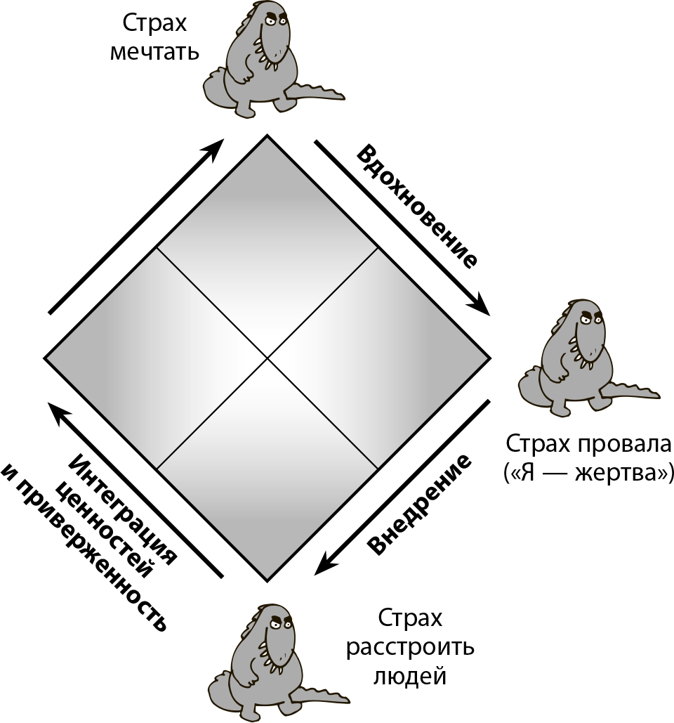 Чтобы не поддаться этому гремлину, необходимо сосредоточиться на том, что нам подвластно. А нам подвластны наши высшие ценности и глубинный смысл жизни. Осознав это, мы обретаем способность двигаться дальше. В противном случае истинная сущность оказывается застывшей и скрытой за неудовлетворенностью, разочарованием и потерей контроля. Отождествление с системой может породить чувство неудовлетворенности, обиды, скептицизм и пассивную отрешенность даже в момент достижения успеха. (Это похоже на преувеличение, но, когда люди идентифицируют себя с такой системой противодействия, они могут отрицать или подавлять свои мысли и чувства и застывать в высокомерии стоицизма.)
