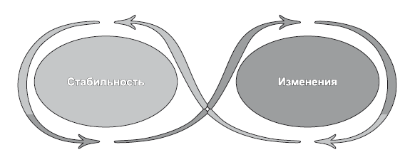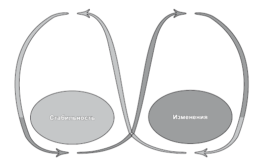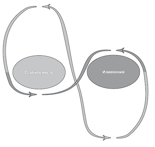 Взаимозависимые противоположности находятся внутри петли бесконечности в определенном положении по отношению друг к другу. В рассмотренном ниже примере такими противоположностями будут стабильность и изменения (рис. 19).