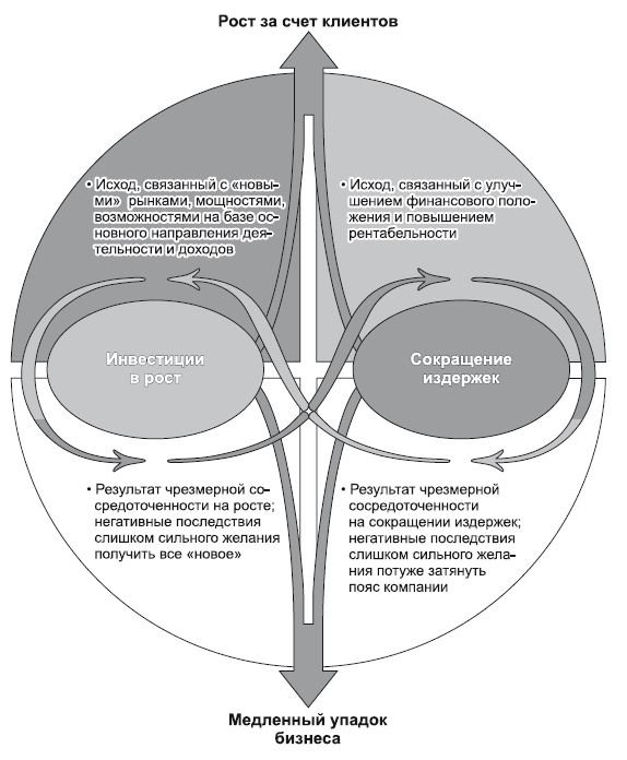 Далее мы вставляем благоприятный исход при фокусе на каждом полюсе пары и негативный исход при чрезмерной сосредоточенности на одном полюсе пары в ущерб другому. Чтобы проиллюстрировать, как появляются эти благоприятный и неблагоприятный исходы, я воспользуюсь несколькими примерами, первым из них будет компания St. Louis Finance, с которой мы познакомились в главе 1.