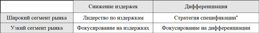 * О стратегии спецификации и ее отличиях от стратегии дифференциации будет рассказано в главе 18. Авт.