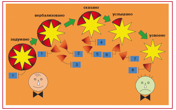 Рис. 14.2. Потери и искажения информации в процессе общения