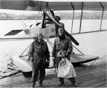 Уильям Боинг и пилот Эдди Хаббард перед первым перелетом по доставке почты из Ванкувера в Сиэтл 3 марта 1919 года