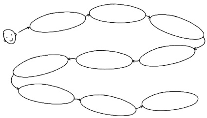 Мы заранее определяем тот путь, который должен пройти потенциальный клиент: вначале необходимо заинтересовать его чем-то полезным и бесплатным, затем познакомить с нашей компанией поближе, потом показать, какие мы молодцы, если все равно не купит – прислать еще больше полезных материалов, дать ему время влюбиться, если купит – поблагодарить. Такой заранее запланированный сценарий так и называется – customer journey – «путешествие клиента».