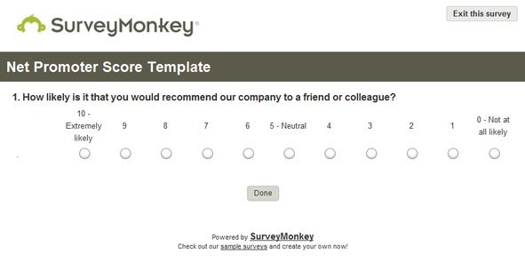 Классический опрос для составления NPS