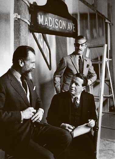 Дэвид Огилви с двумя созданными им «рекламными иконами»: Мужчиной в сорочке Hathaway и Эдвардом Уайтхедом – звездой рекламы напитка Schweppes