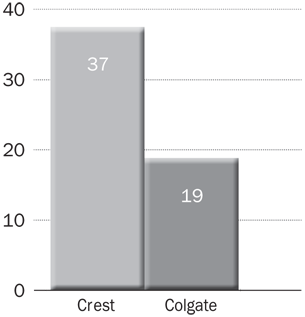 По данным исследований, у зубной пасты Crest производства Procter & Gamble доля рынка в США вдвое больше, чем у Colgate. Но это не новость, а давно известный факт, и не это заставило Маргарет забеспокоиться. Всему виной следующие две диаграммы в докладе (рис. 1.2 и 1.3).
