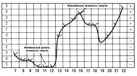 После нескольких дней подобной регистрации вы, наверное, заметите, что пик вашей физической и умственной активности ежедневно приходится примерно на одно и то же время. Это и есть ваше самое продуктивное. По возможности намечайте выполнение самых сложных работ именно на эти периоды, а более рутинные работы планируйте на время, когда уровень вашей физической и умственной активности выше нулевой линии.