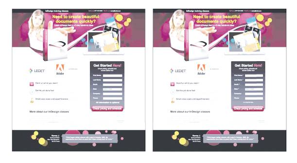 Наконец, в заключительном примере (рис. 8.2) даны две практически идентичные версии интернет-страницы — за исключением того, что в варианте слева все поля в форме для заполнения необязательные. У этого варианта коэффициент конверсии был на 31 % выше. Более того, качество этих контактов было выше.
