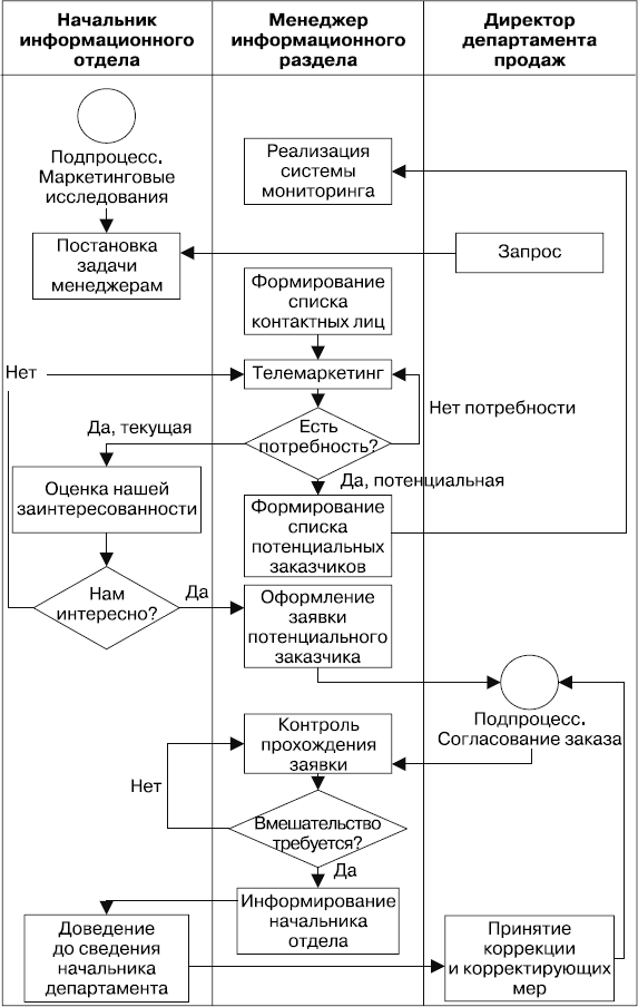 Пример, приведенный ниже, показывает, как подпроцесс поиска и привлечения клиентов может быть организован в такой специфической с точки зрения продаж сфере, как строительно-монтажные работы.