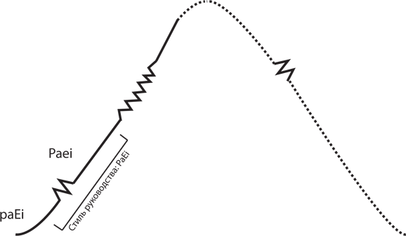 На этапе Юности организация должна стать PAei. Соответственно, ей требуется стиль руководства PAei. Но будьте внимательны. Если организация превратится в РА00, то она отвергнет и изгонит лидера PaEi, имевшегося на этапе «Давай-давай», в результате чего лидер PAei вызовет преждевременное старение. Как только этап PAei завершится, организации снова понадобится роль Е, а это потребует стиля руководства pAEi.