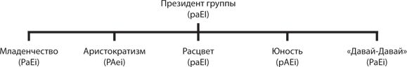 Этап Аристократизма – это совсем другая история. Организация достигает состояния, в котором ей требуется стиль РА, позволяющий наращивать капитал, необходимый для поддержки ее молодых отпрысков. Говоря это, я подразумеваю, что мы имеем дело с аристократической организацией, которая уже является дисфункциональной или стареющей с точки зрения ее рынка. Если организация нуждается в омоложении, то ей лучше подойдет стиль РЕ, а не РА.