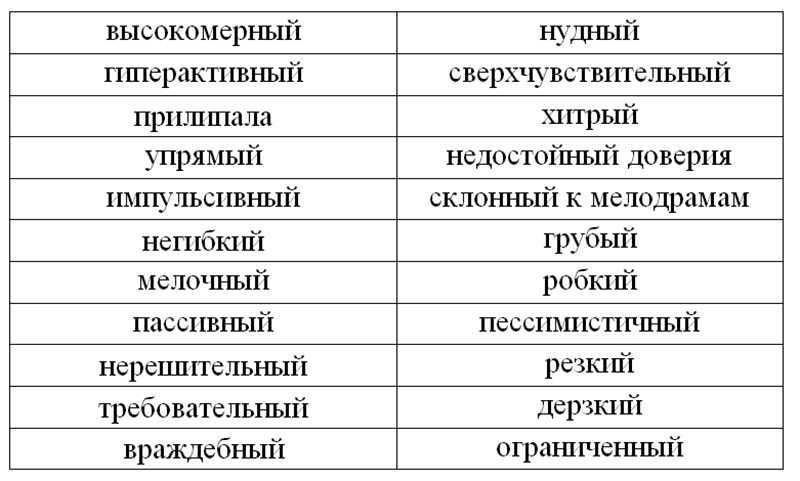Обычно даже самые прямолинейные люди отзываются на такую просьбу не без колебаний. Чтобы разговорить их, не спрашивайте: «Есть у меня какие-либо черты характера, которые вас задевают или раздражают?». На такой вопрос они обязательно ответят «нет». Вместо этого предложите список и попросите отметить те ваши черты, которые, по их мнению, могут досаждать другим людям. Список может быть примерно таким:
