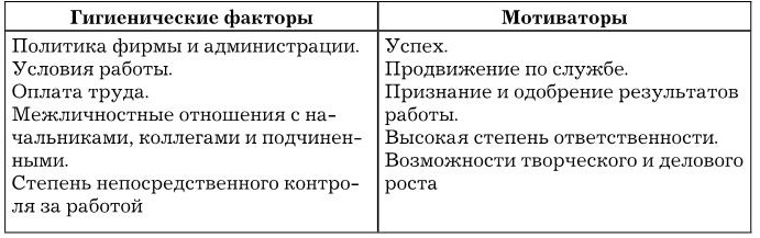 Двухфакторная модель Ф. Герцберга – теория мотивации, основанная на потребности, – приводится в табл. 4.