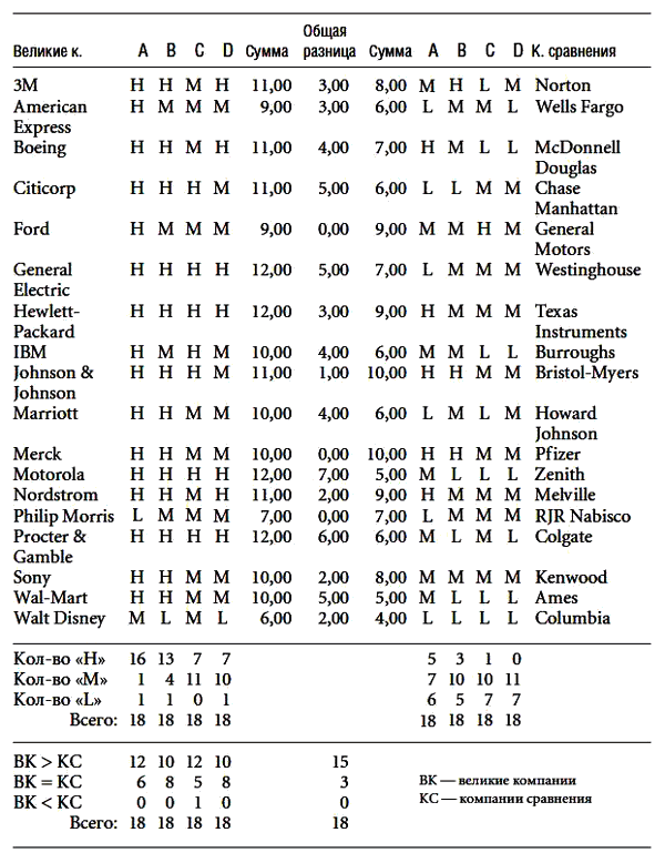 Основываясь на всех имеющихся у нас фактах деятельности компаний, мы дали всем им оценки по каждой категории. Затем путем суммирования была получена итоговая оценка для каждой компании, при этом отметка «H» оценивалась в 3 балла, «М» — в 2 балла, «L» — в 1 балл.