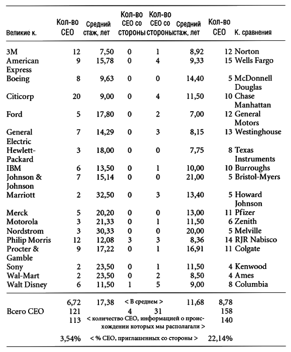 M: Свидетельства того, что компания производит выбор CEO преимущественно изнутри, за одним-двумя исключениями.