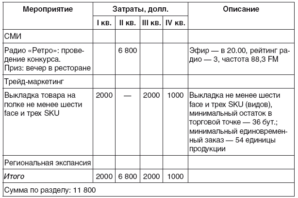 • общий объем расходов на реализацию всех маркетинговых мероприятий, предусмотренных планом;