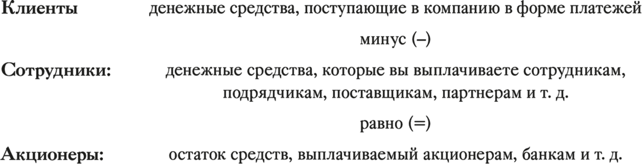 Давайте для начала проанализируем область «Люди». Вы можете рассчитать движение денежных средств через вашу компанию с помощью следующего уравнения: