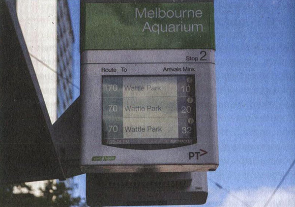 Рис. 6.5. Почти на каждой остановке есть табло, показывающее время до прибытия следующего трамвая. Мельбурн, Австралия (фото: Илья Варламов www.varlamov.ru)