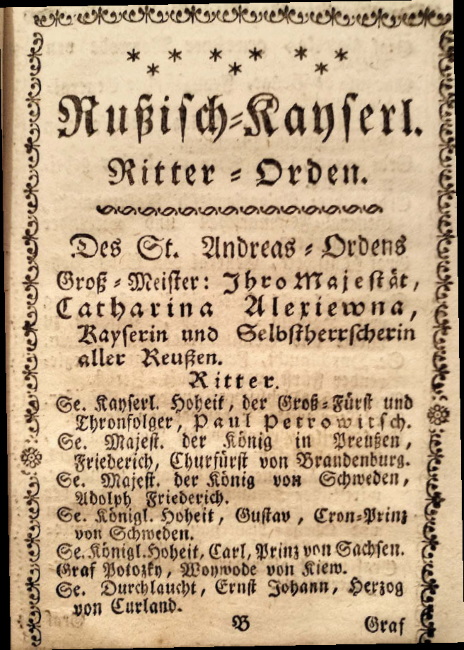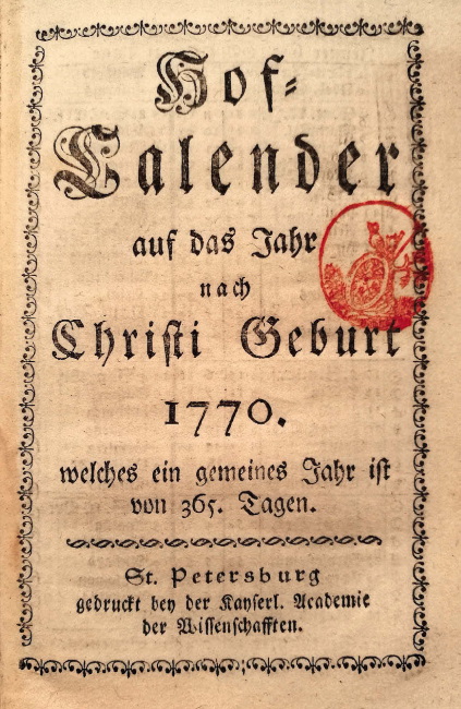Одна из жемчужин коллекции – петербургский Придворный календарь 1770 г. Примерно такой календарь матушка Петруши Гринева в «Капитанской дочке» Пушкина прятала от его отца – чтобы глава семейства не приходил в раздражение от карьерных успехов бывших сослуживцев. Зимний дворец здесь еще «новый». Есть сравнительно редкий для русских ежедневников раздел – перечень членов ордена Св. Андрея Первозданного.