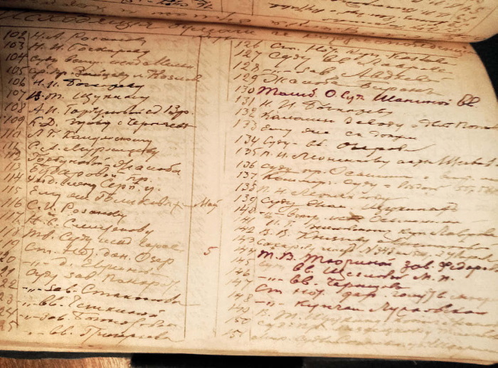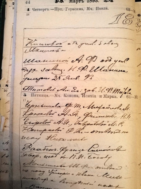 Присяжный поверенный Г.И. Розанов, живший в Калошином переулке на Арбате, не только подробно планировал многочисленные судебные, наследственные и прочие дела своих клиентов – он еще и вел реестр всех входящих и исходящих писем – очень тщательно, хотя и чрезвычайно мелким и нечитаемым почерком.
