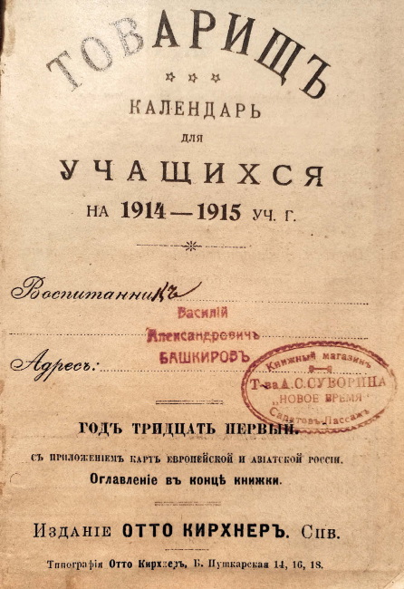 Очень популярный ежедневник школьника, который под тем же названием, но с более бедной содержательной частью продолжали издавать и в советское время. Обратите внимание на «Каталог книг моей библиотеки».