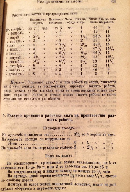 Интереснейший документ эпохи, много статистики, бытовых подробностей. Как обычно в дореволюционных календарях, прекрасный русский язык. Обратите внимание на раздел «Расход времени и рабочих сил на производство разных работ». Особенно радует реклама выставки роялей и фортепиано – очевидно, рекламодатель считал сельских хозяев вполне целевой аудиторией.