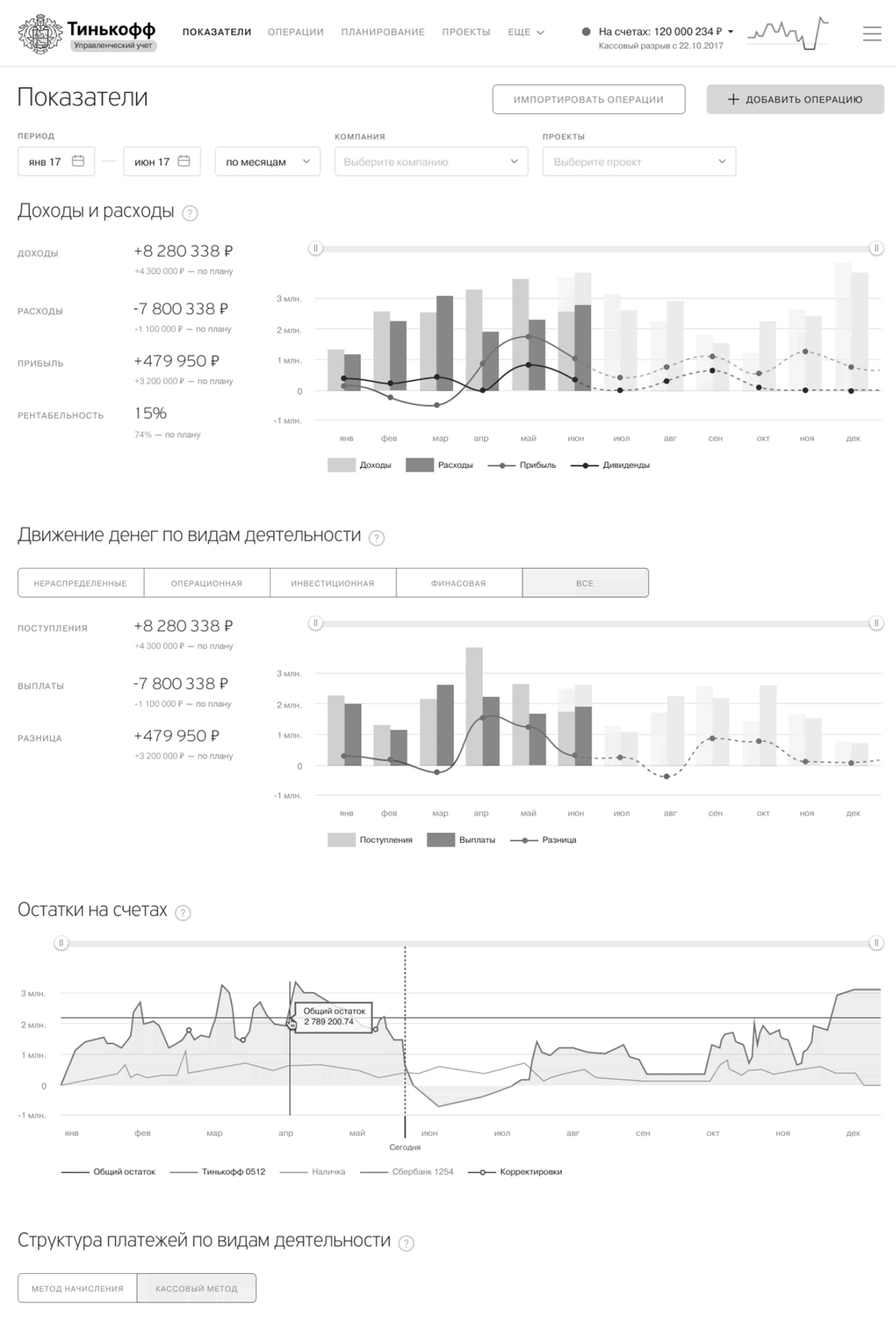 Крутые ребята делают еще такое упражнение: они делят все свои деньги и обязательства на как минимум три вида деятельности — операционную, инвестиционную и финансовую. Если вы клиент Тинькофф Бизнеса, это за вас сделает наша система управленческого учета.