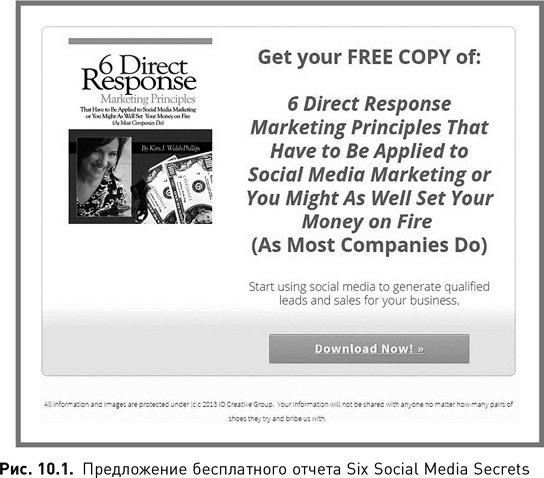 Давайте воспользуемся примером, в котором я предлагала компании Six Social Media Secrets раздать читателям бесплатный отчет (рис. 10.1).