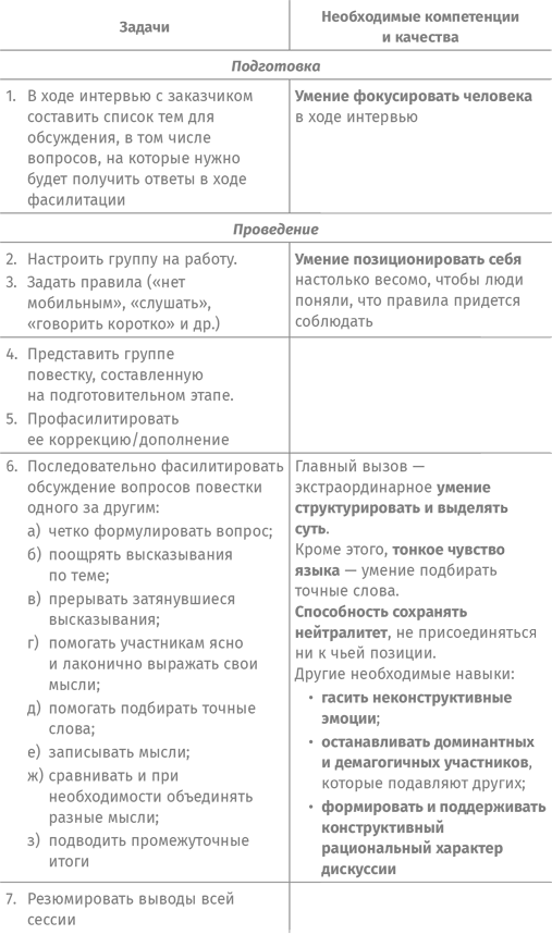 Давайте обобщим весь процесс и навыки работы процедурного фасилитатора.
