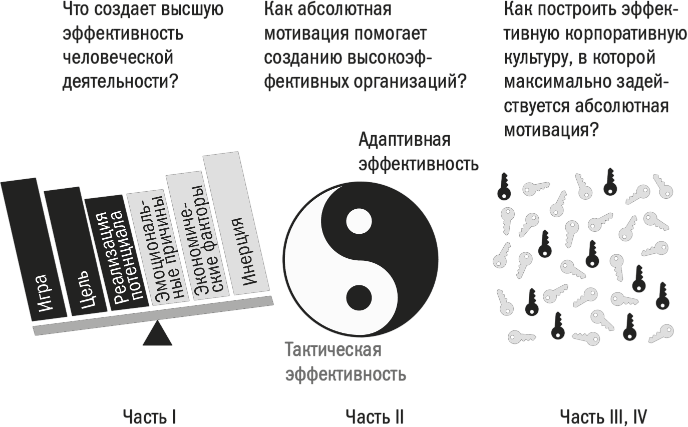 Наконец, в четвертой части мы расскажем о пошаговой стратегии создания эффективной корпоративной культуры, начиная с фактора абсолютной мотивации – простого прогностического инструмента для шести мотиваций. С его помощью вы легко увидите, в чем ваша культура слаба, в чем сильна и как ее изменить.